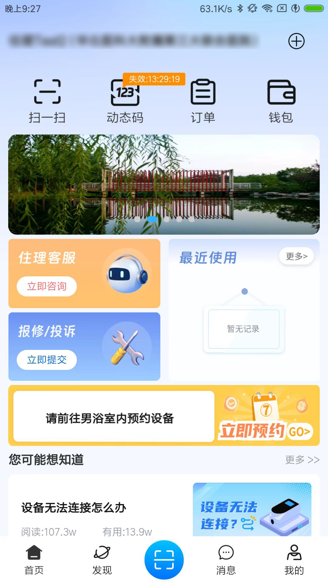 步骤一:首次消费需要用住理生活APP扫描设备上的二维码。