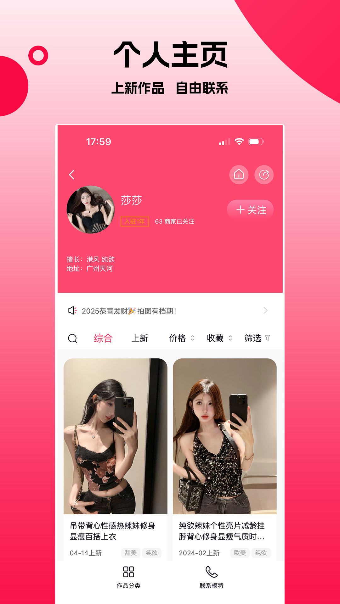 4、平台有大量优秀艺人,模特,演员、主播、网红人才库,商家、经纪可以直接联系