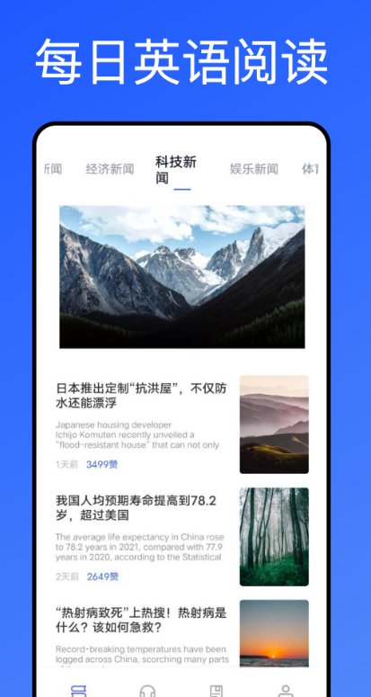 每日英语app是一款英语方面的阅读理解软件,为你提供了很多实用的功能,直接的在这里掌握更多的英语单词,直接的帮你解决很多的乐趣,可以进行英语文本的阅读,加上一些超简单的方式,让你的单词更加的熟悉,一起来这里看看吧!