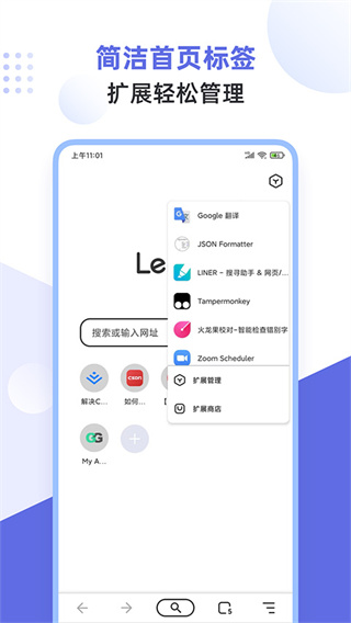 一款同时支持谷歌Chrome扩展插件和微软Edge扩展插件的浏览器。无广告、无新闻、无推送。针对目前市场上支持Chrome扩展的kiwi浏览器和Yandex浏览器进行深入研究。对用户界面与交互进行了深度优化