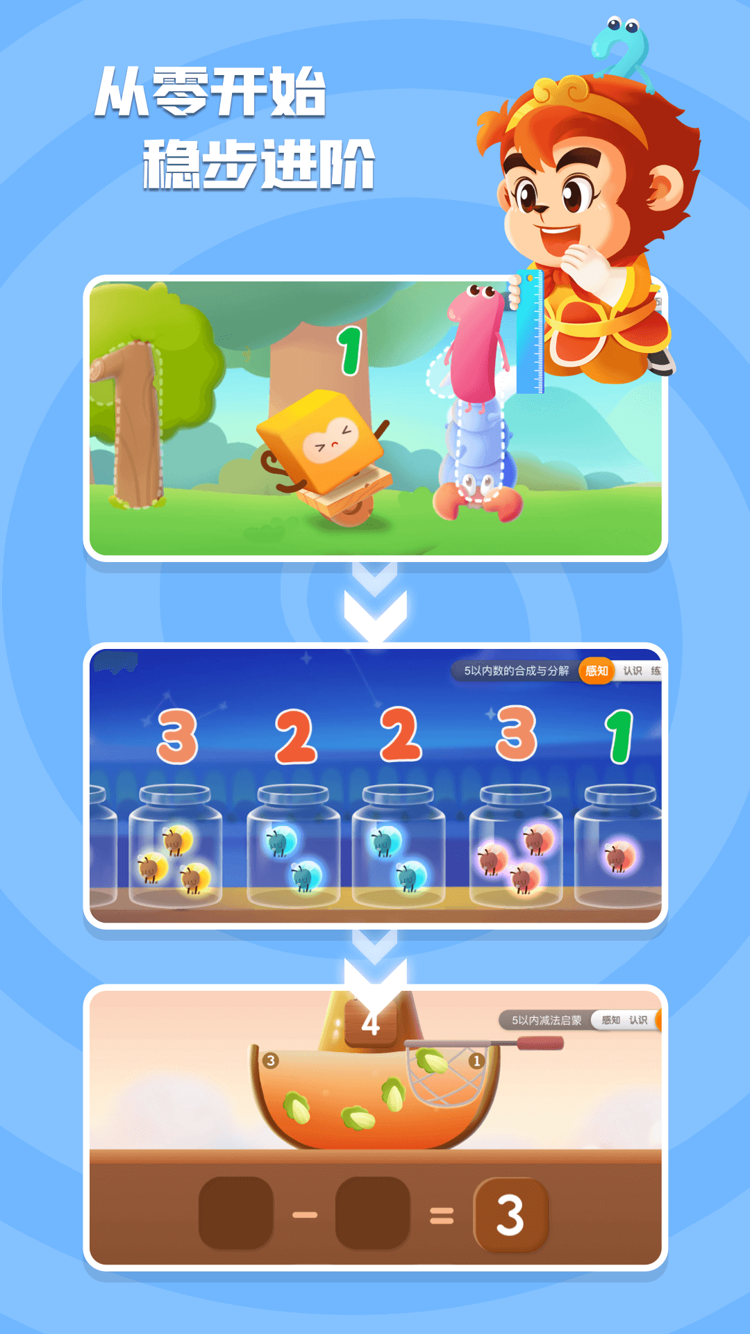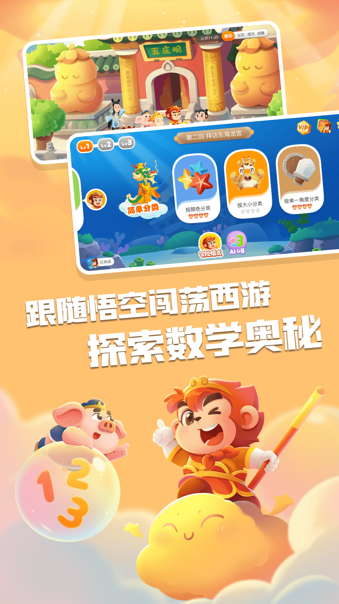 悟空数学幼儿免费版应用,专为幼儿推出的学习软件,从基础的数字认识学起,含有多个板块内容,专为孩子研发,以故事的形式将知识展现出来,吸引孩子的注意力,单元由简单到难