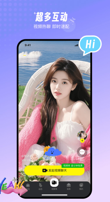【视频聊天】:给有趣的灵魂打个视频招呼,合眼缘就开聊,24小时在线处cp;