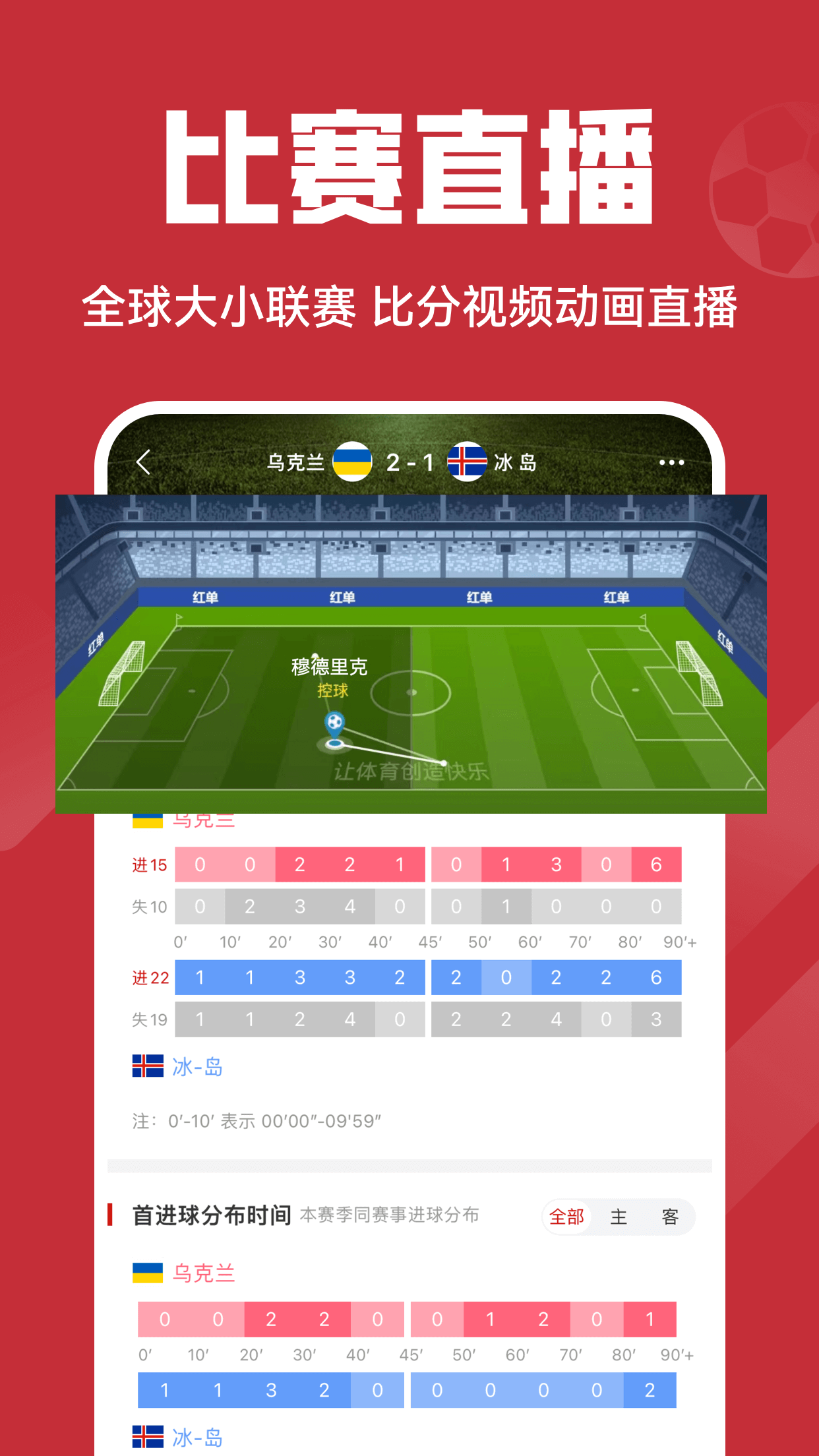 2、首发阵容、比赛进度回顾、控球率、红黄牌等数据信息;