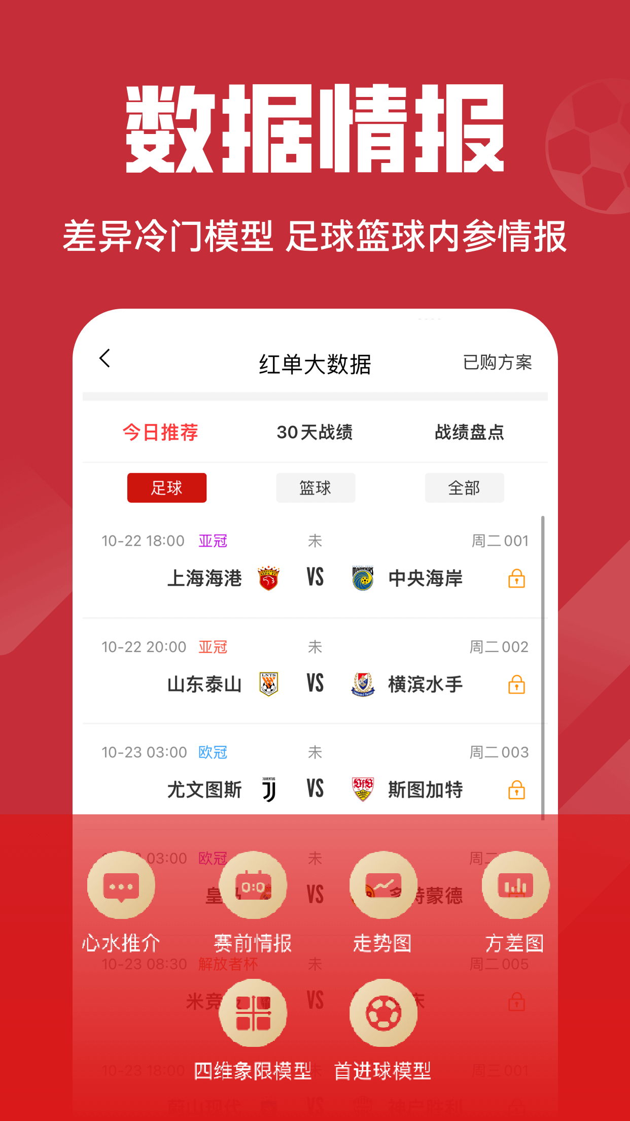 2、球队积分排行、交往战绩统计、盘口赔率变盘信息疯狂红单app应有尽有;