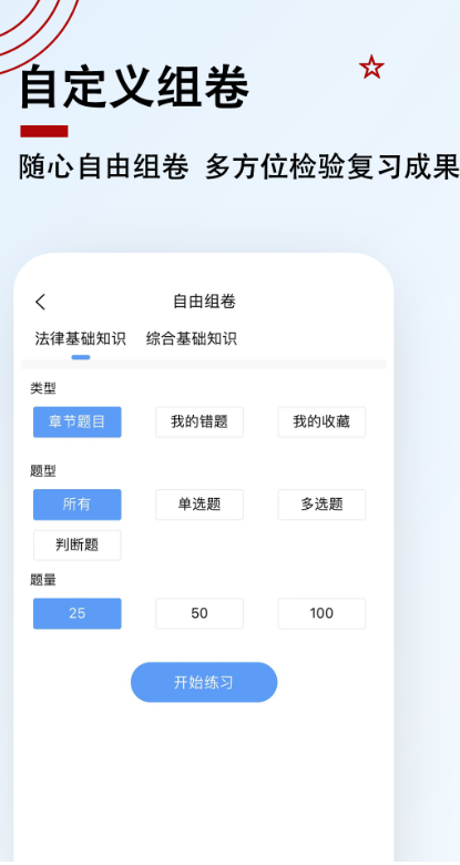 【自己组卷】书记员题小宝新增自由组卷功能,错题、专项题、收藏题随意组卷,多方位检测书记员的复习备考情况。