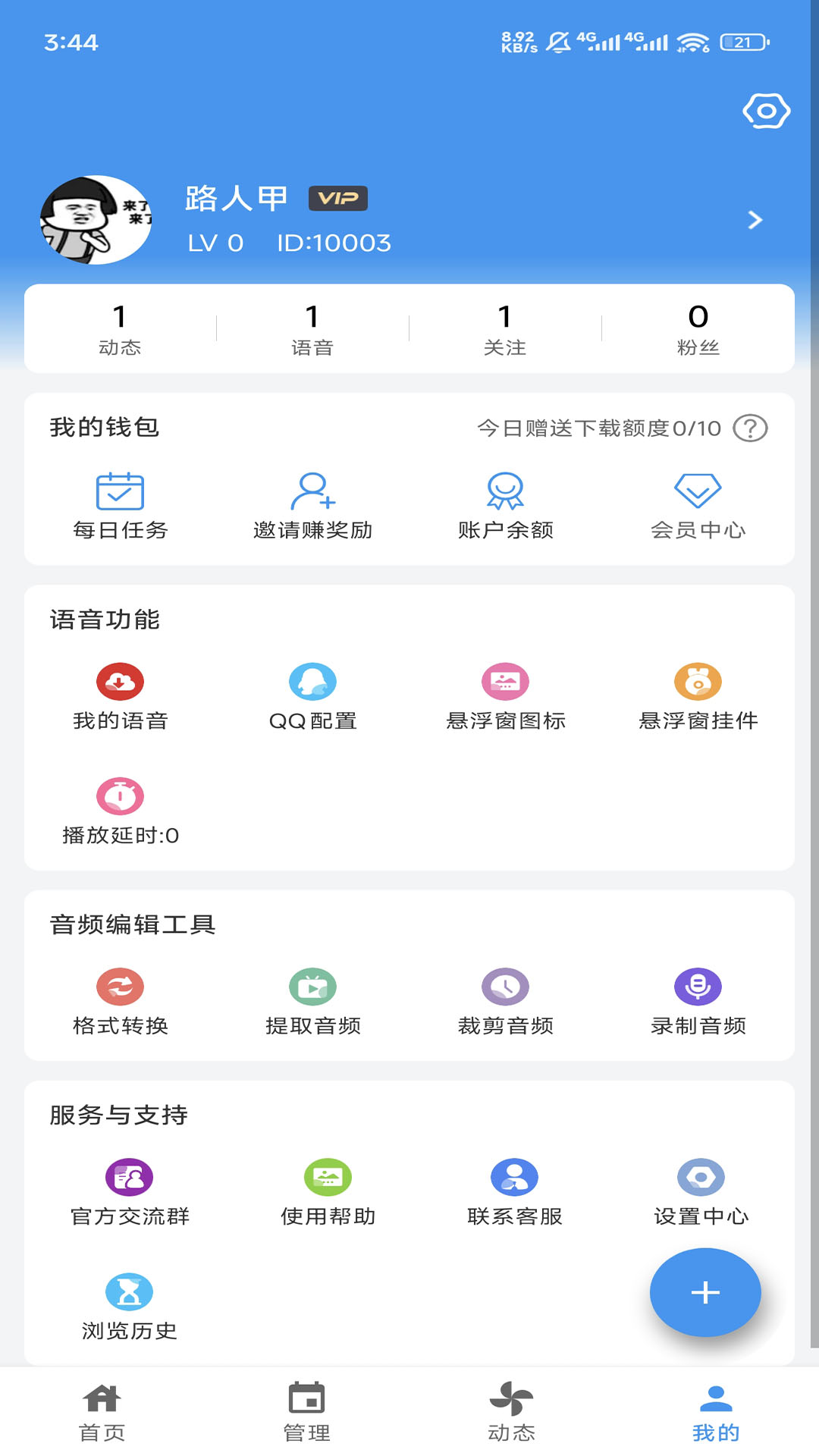 想要使用千变语音的话,需要先去登录自己的QQ账号,然后在页面中点击“语音管理”选项,就可以导入或者录制自己需要的语音了。