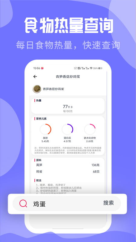 3. 营养成分查询:用户可以通过软件查询各种食物的营养成分,如热量、蛋白质、脂肪和碳水化合物等,帮助用户了解食物的营养价值,做出更明智的食品选择。
