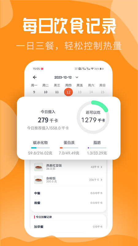 饮食记录:能够记录每天的饮食情况,包括摄入的热量和营养成分等。