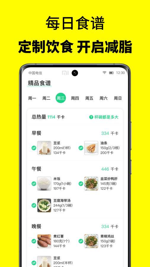 记录体重、饮食、运动、查询热量,数据清晰看得见