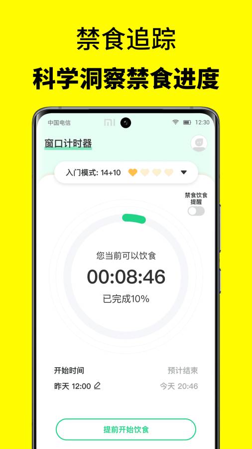 ·无论是断食时间、饮食建议、食物热量、体重记录、形体自拍、瘦身日记或是贴心的饮水提醒、定时通知,都为有效节约您的精力,督促减脂,帮助您坚持下去