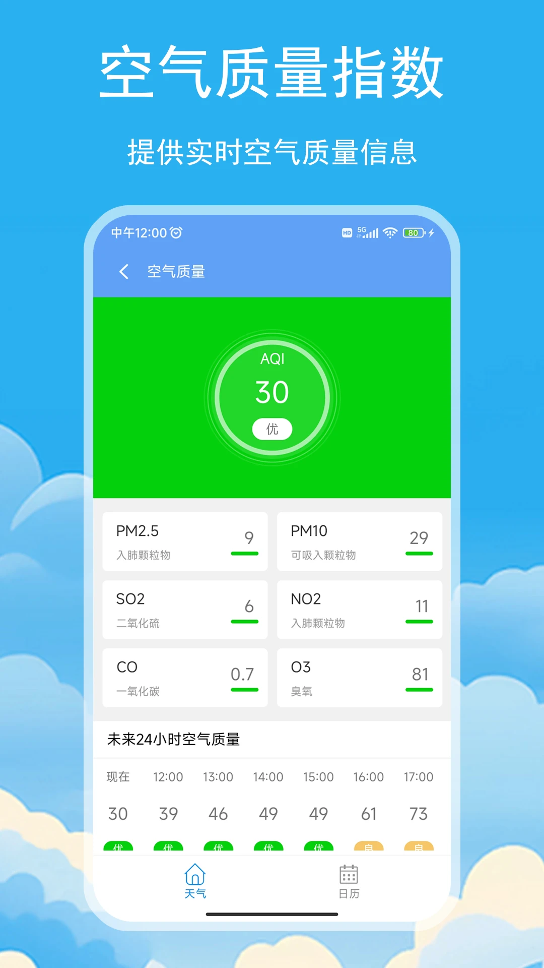 【实时天气预报】获取您当前位置的天气预报,支持实时温度,风向,湿度,体感温度,风速,气压,空气质量,紫外线等气象信息。