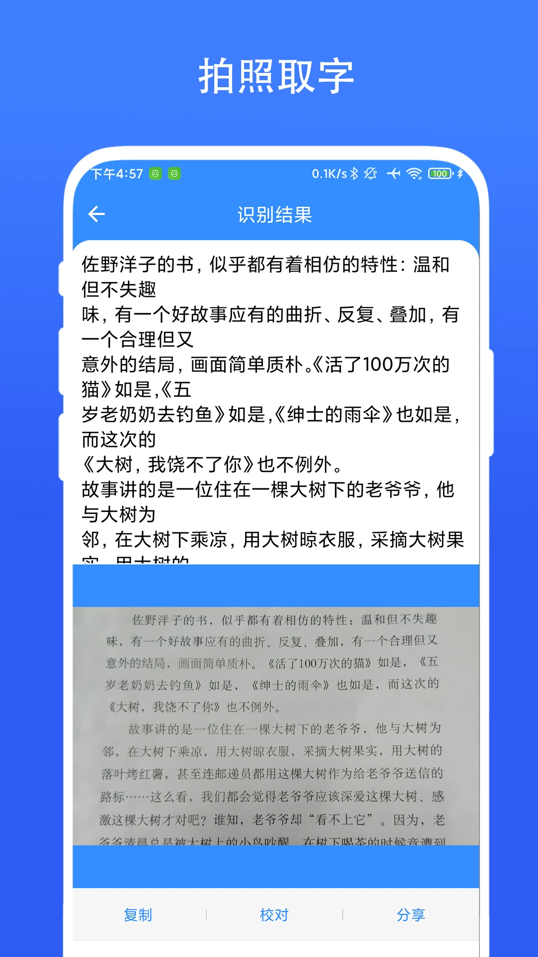 2、免费校对识别后的文字,并且可以进行复制、分享,或者保存为txt文本。