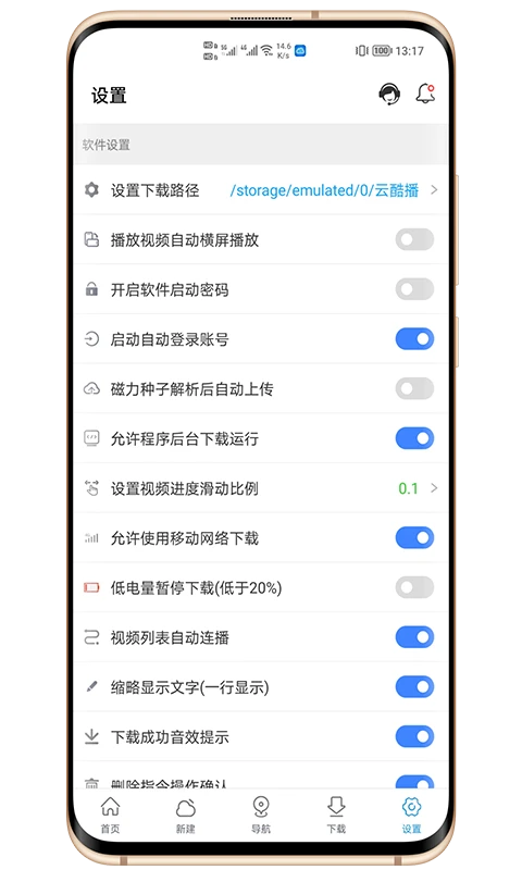 4、设置选项:下载路径设置,可以让用户制作完全自定义的设置各种的功能。