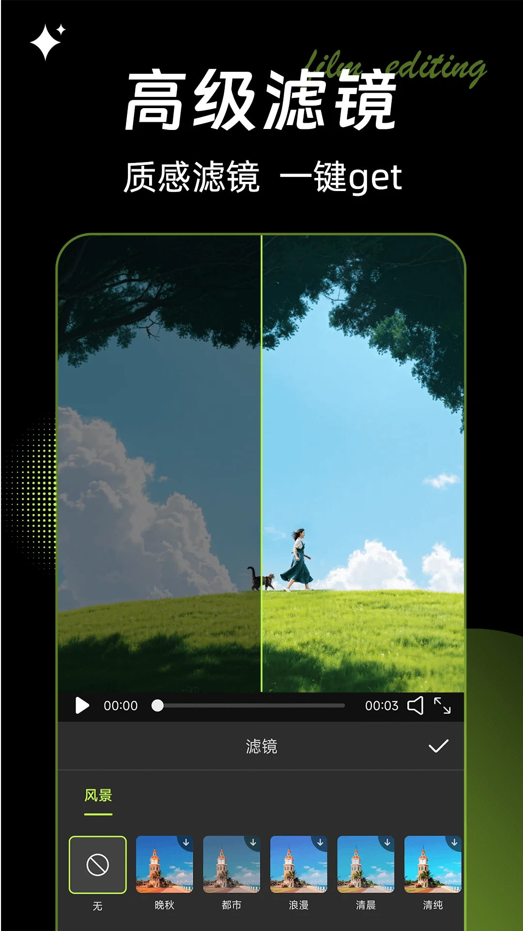 4.提供多样的专业滤镜轻松打造质感画面效果。