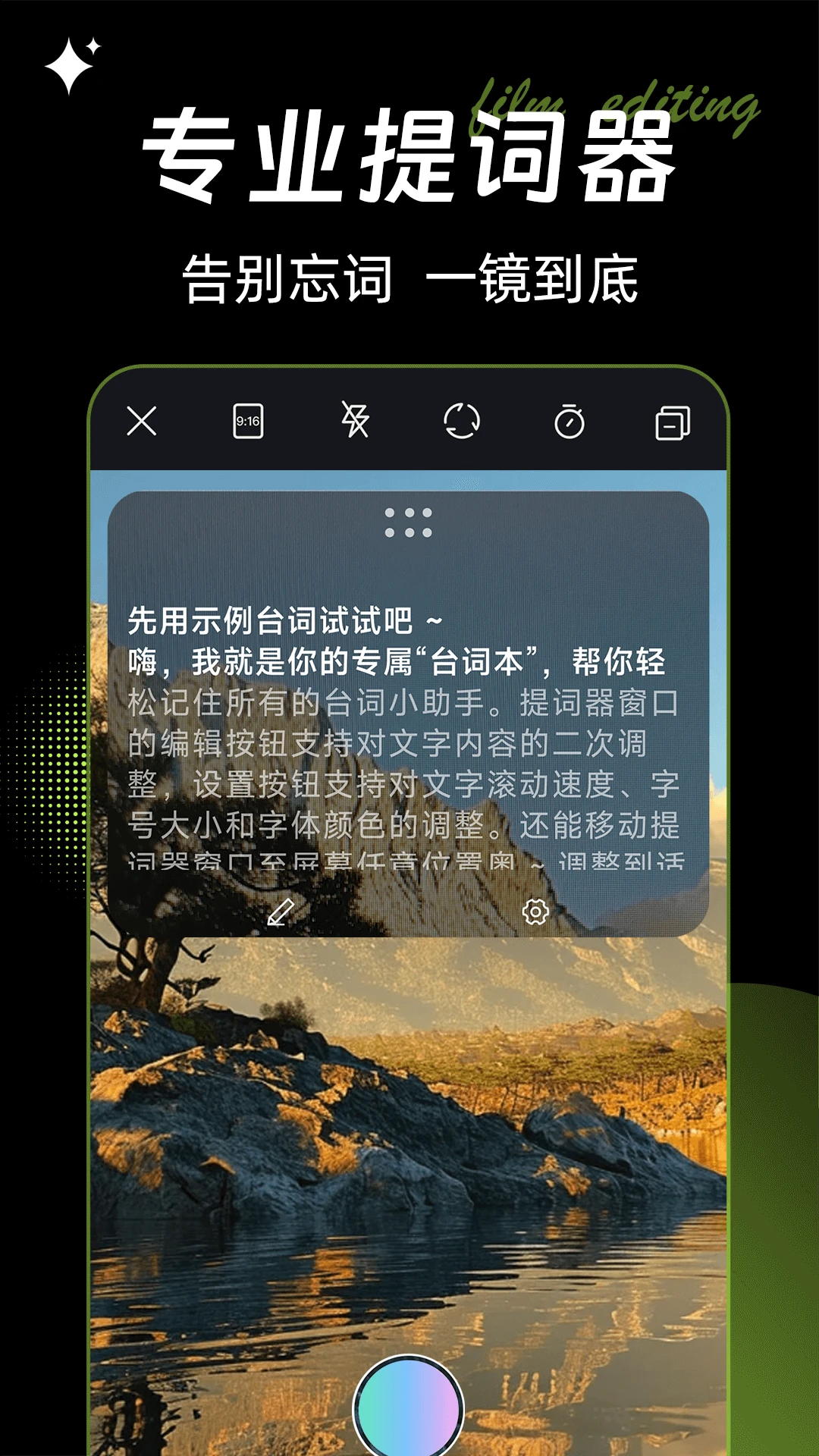 1、提词器:在拍摄过程中,如果你需要记住台词,可以使用提词器功能。该功能可以帮助你轻松地记住台词,让你的表演更加自然流畅。
