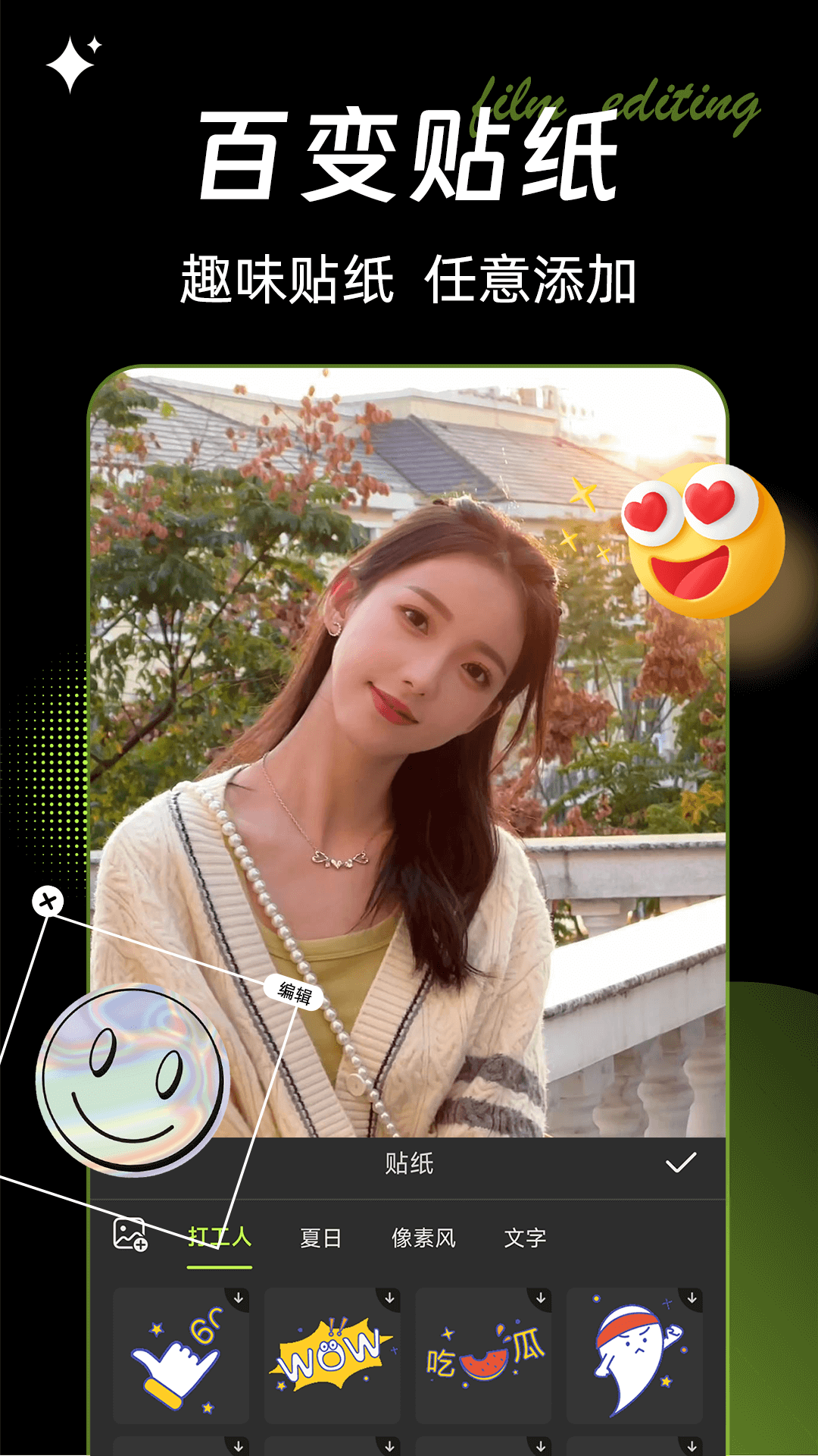 3.众多的精致好看的贴纸及文本丰富你的视频;
