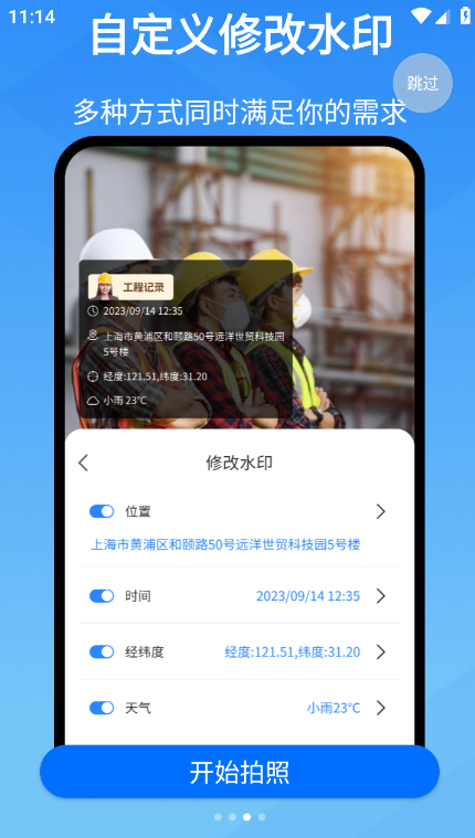 2、拍照时可以自带水印,也可以根据自己的要求设置水印;