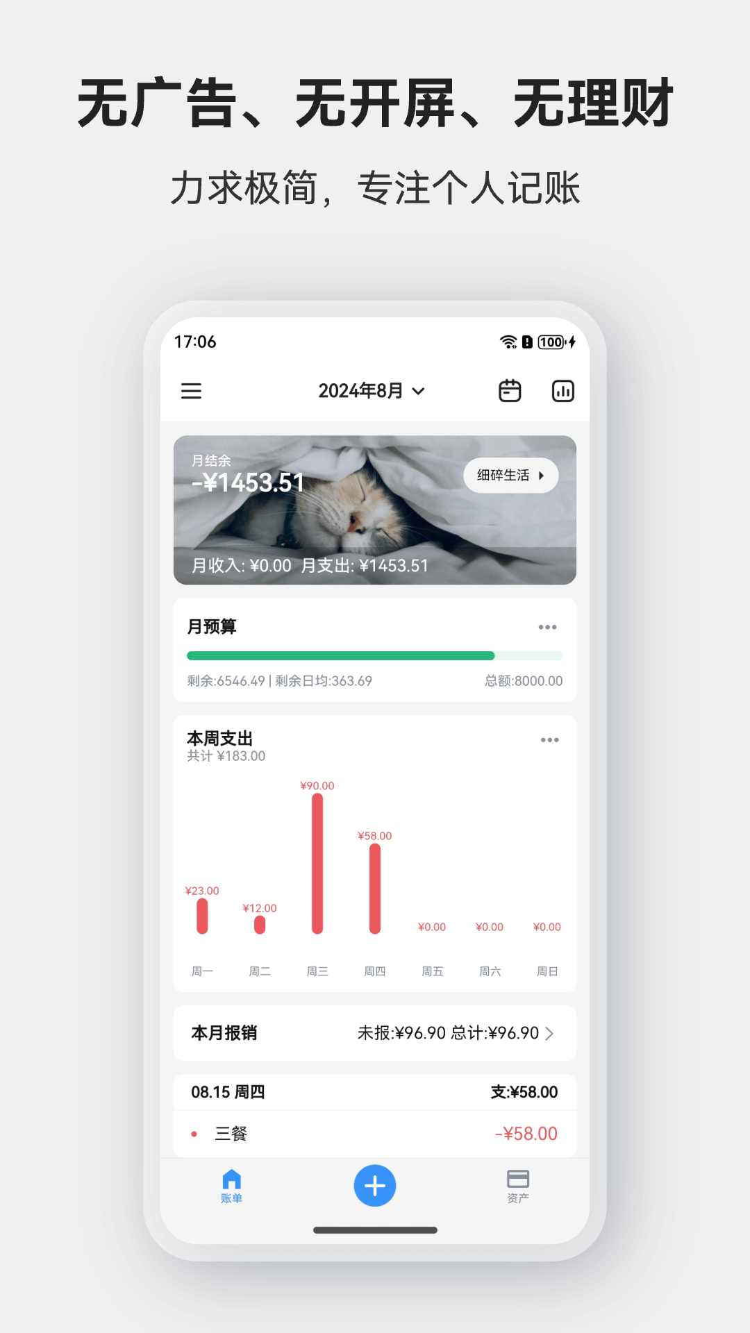 2.力求极简,只有记账功能,永不添加各种理财坑人业务;