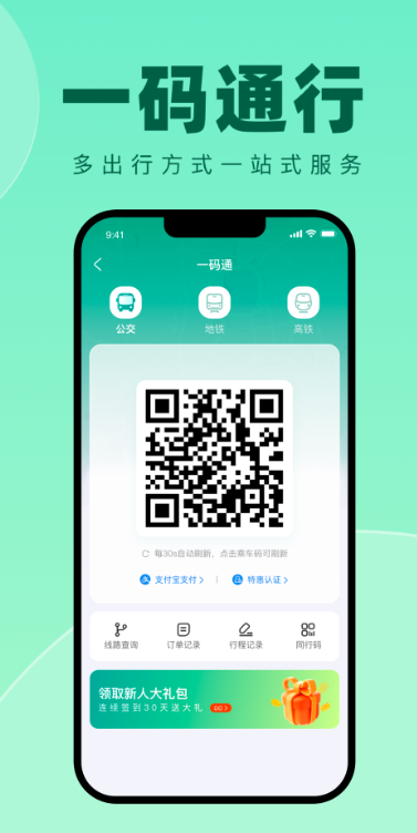 2、用户点击扫码专区,可以快速在线定位,及时在线查看你的乘车码。
