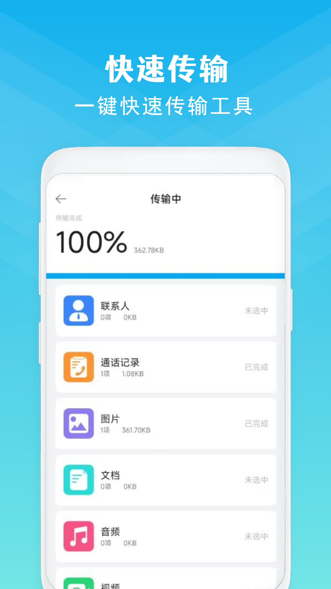 一款换机传输软件,软件为用户提供最便捷的数据传输帮助,通过软件用户可以很方便的完成各种数据的传输,操作简单