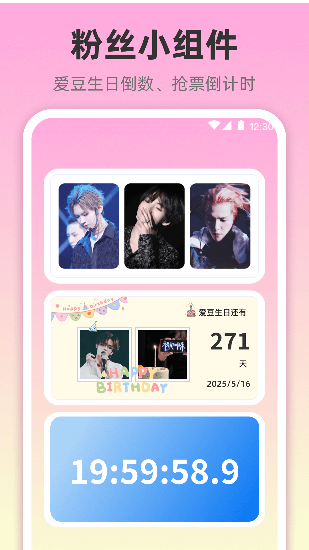 1、粉丝小工具,如爱豆的生日倒计时和抢票倒计时,提供了多种选择;