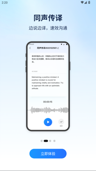 ·语音翻译,可以实现实时的语音对话,随时都可以进行简单轻松的翻译