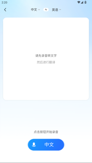 1、通过语音录制,实现实时和老外对话,能够自动识别说的语言。
