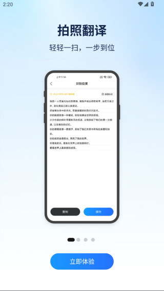 ·拍照翻译,拍摄你想要翻译的内容,软件自动为你翻译图片里面的文本内容