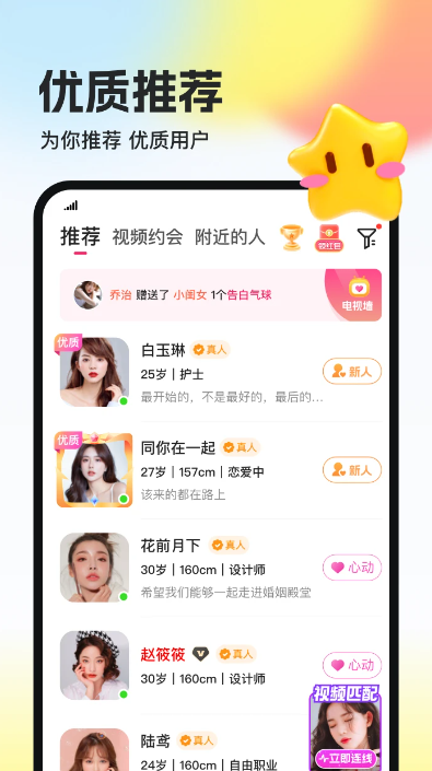 3、该平台专注于真实的社交互动和聊天,没有任何虚假行为。多重信息认证和审查系统确保了每个人信息的真实性,每个人都可以在这里找到自己的幸福!