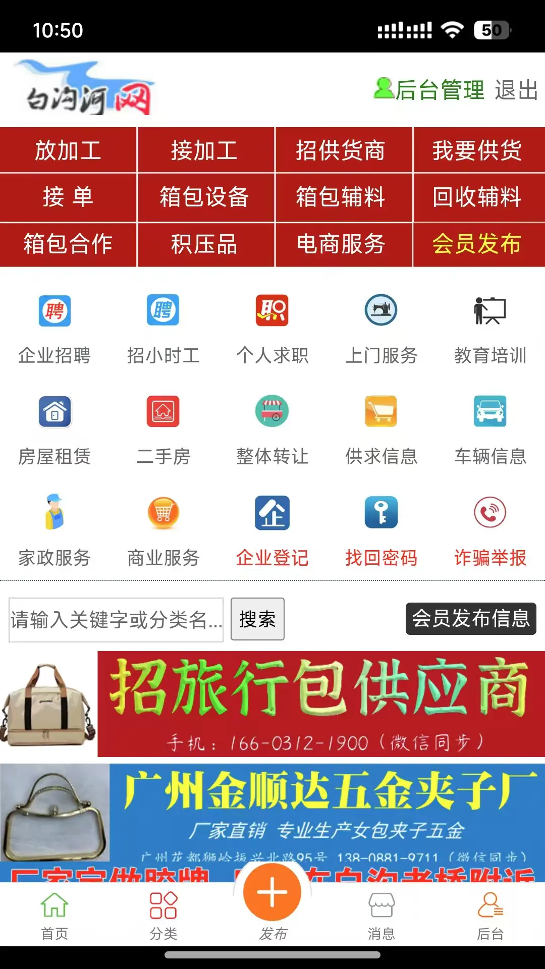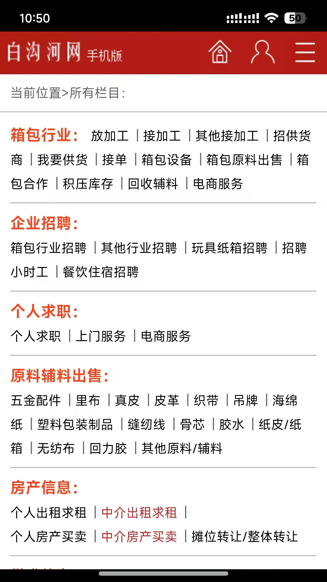 白沟河网app是一款专注于箱包加工领域的综合服务平台。该平台为白沟地区的用户提供了丰富的功能和服务,包括求职招聘、放加工、接加工、房屋租赁等。用户可以在平台上发布自己的信息,如求职信息、加工需求、房屋出租等,也可以浏览平台上的各类信息,寻找自己需要的机会或资源。白沟河网app致力于打造一个便捷、高效的箱包加工生态圈,让箱包行业的从业者能够更好地进行交流和合作。