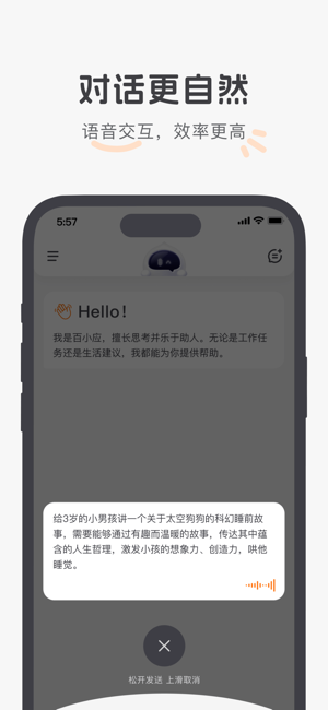 百小应app是一款好用的ai助手软件,能够轻松帮助用户撰写各种文本,同时还支持图片解析的功能,操作起来也很简单,需要哪个功能直接点击按照页面的要求进行操作就能够轻松出现结果,更有超多功能等你来探索哦,喜欢的朋友们快点来下载吧!