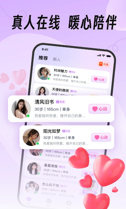 真缘app是一款主打真实视频交友的移动应用程序,旨在为用户提供一个纯净、高效、安全的交友平台。通过真缘app,用户可以随时随地认识新朋友,找到有缘的人,并通过文字、语音、视频等多种方式进行互动聊天。该应用特别注重用户的真实性和交友体验,为用户开启甜蜜的恋爱交友之旅提供了有力支持。