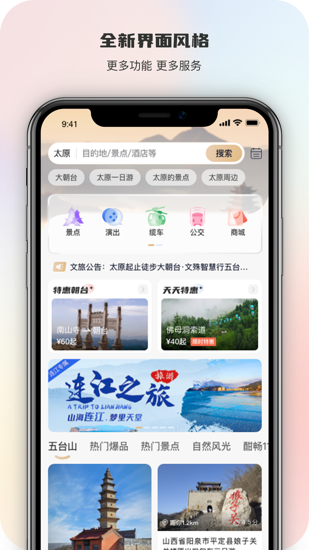 智慧五台山最新版来了!全新的设计风格,全新的功能布局,优化多项功能细节,持续优化使用体验,让平台使用更加流畅