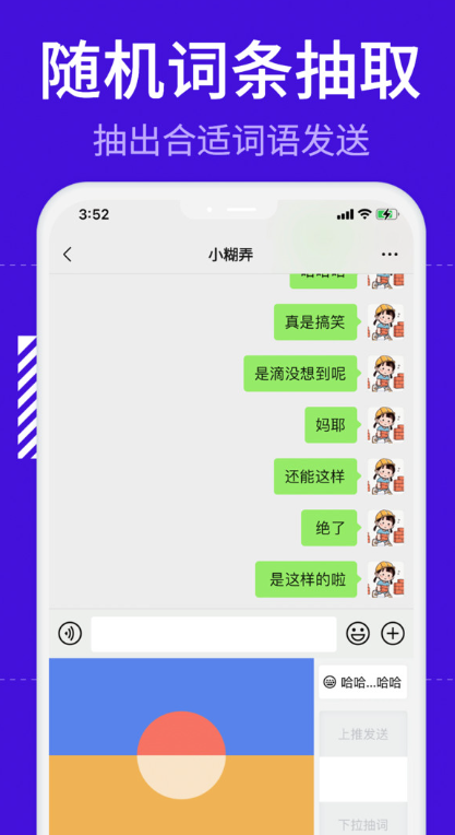2.打开键盘,按键进行下拉可以从词包中抽取聊天回复语句。