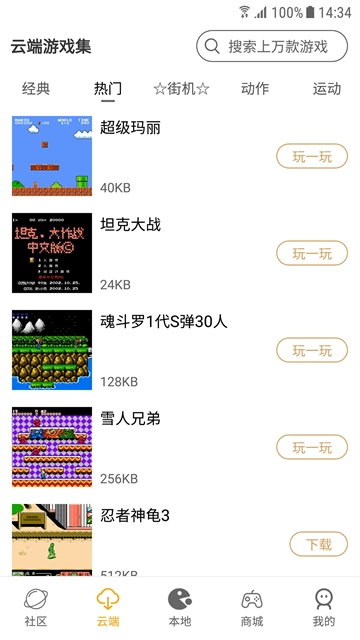 3、点击云端,找到你想要玩的游戏,一键进行下载。