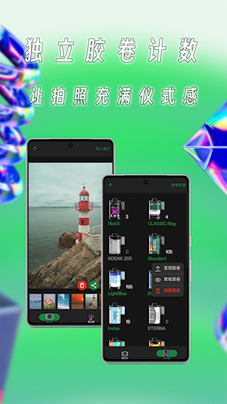 懒相机app在这里你都是可以来轻松选择不同滤镜,轻松拍出具有特殊色彩和质感的照片,出片看起来就很有年代感,提供多种胶片模拟效果,用户可以根据喜好选择不同的胶片风格,拍出不同效果的照片,支持照片导入功能,出片也是拍立得的出片效果,仪式感十足!