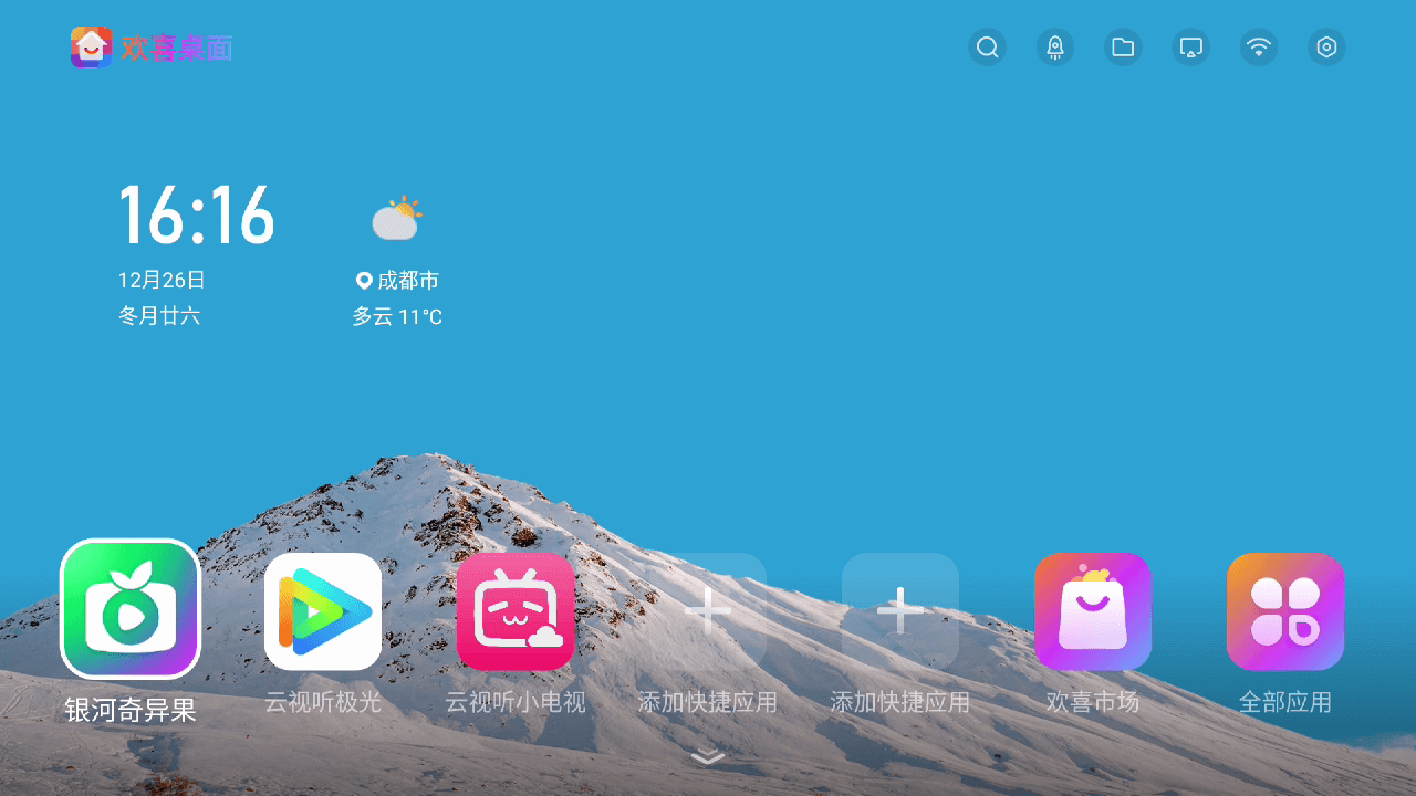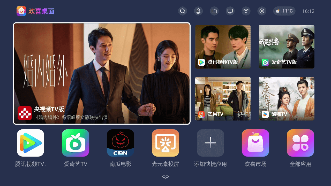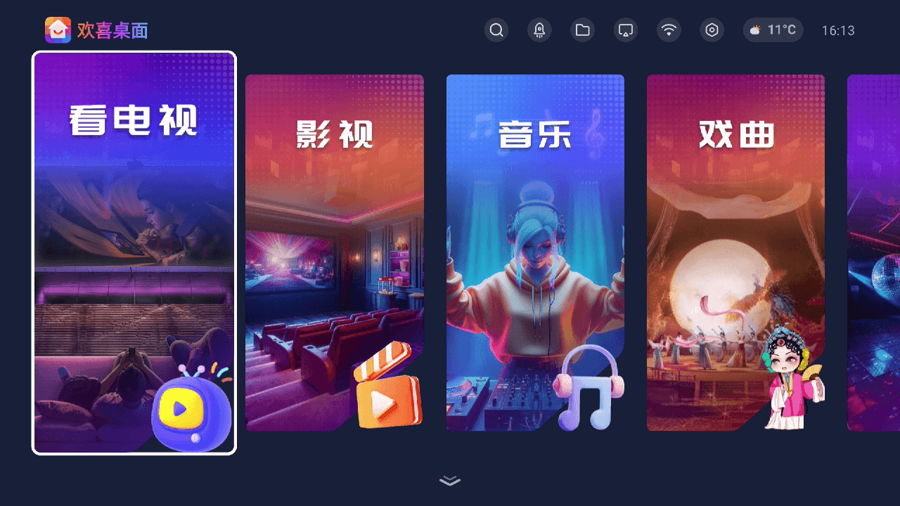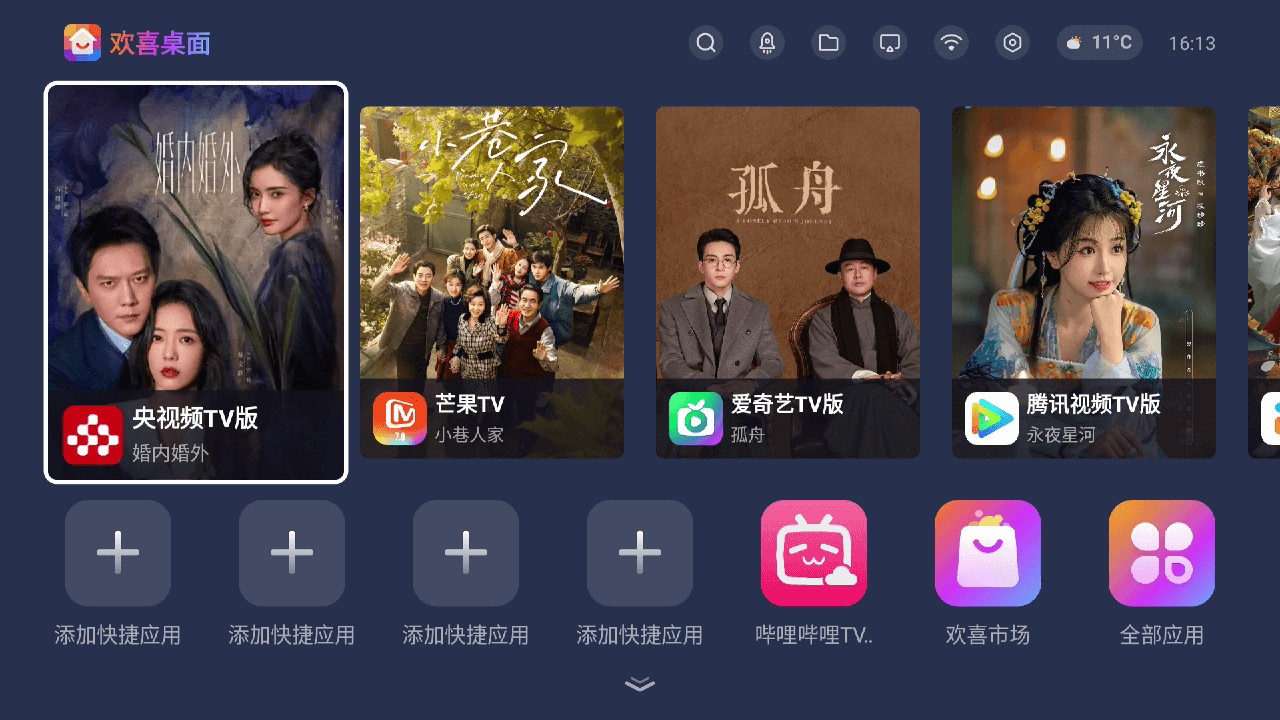欢喜桌面app给大家带来,这是一款专门为智能电视打造的桌面管理软件,通过这款软件应用用户是能够获取到不错的桌面服务的,随时随地也是能够启动获取相关内容,能够为电视用户带来简洁明确的电视桌面,有需要的朋友现在就来下载吧!