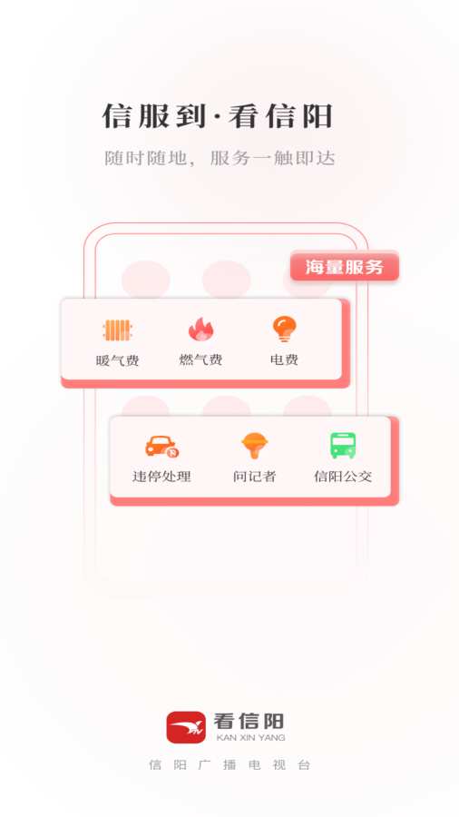 看信阳app是专为本地的朋友们提供的本地服务平台,它里面包含了各种资讯新闻供用户去了解详情,而且还有超多的便民服务帮助用户轻松办理各种事物,并且办理进度可查询,非常实用方便的一款软件,喜欢的朋友们快来下载试试吧!
