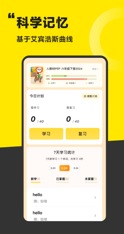 好好学单词app是一款专注于英语知识教育和记忆强化的学习工具,覆盖K12课标、四六级、考研及国际考试(如剑桥、新概念)等30+权威词书,满足从小学到考研、职场英语提升等多阶段需求,采用“学、读、选、拼、测”五步法强化记忆,结合自然拼读教学与AI语音评测,实时纠正发音,通过情景对话强化口语应用,基于艾宾浩斯遗忘曲线生成动态复习计划,自动调整学习难度,平衡挑战性与成就感,帮助用户形成长期记忆闭环,每日任务仅需10分钟即可完成,适配快节奏生活,支持零散时间高效学习。支持拼写、听写、翻译等7种练习模式,适配不同学习阶段需求,通过多维训练巩固记忆。
