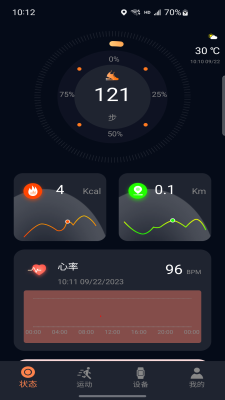 2、完成个人信息设置之后进入app便可以随时查看自己的运动数据与状态;