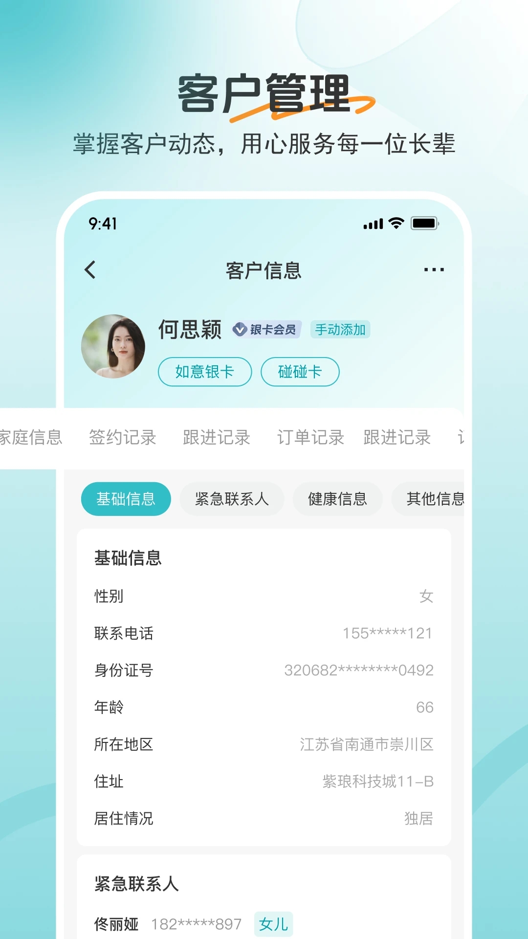 4、点击客户信息可以查看每一个客户的具体资讯,方便你更好地展开工作和服务。