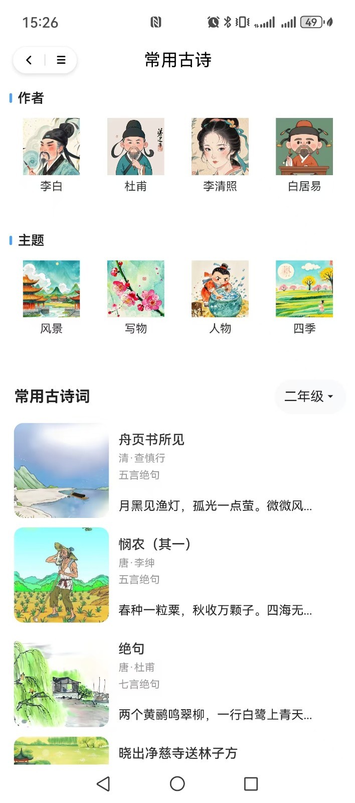 4、更有常用古诗为你提高你的文化水平,让你获得更好的提升。
