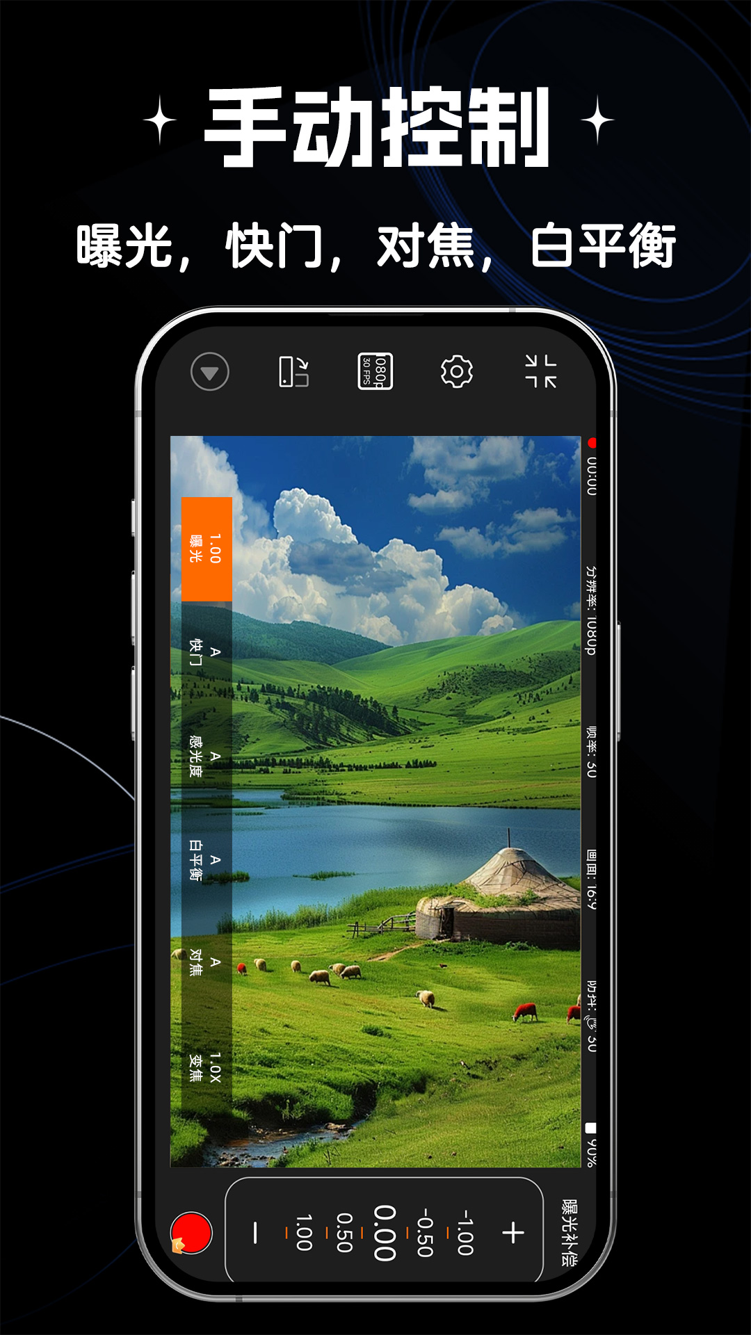 3、该款APP在参数调节方面赋予了用户极大的自主权,手动控制曝光、快门、感光度、就如一台专业的单反相机。