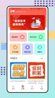 考编百事通app是专为需要参加公考的用户打造的学习备考平台,汇聚了丰富的知识课程与题库,让大家随时高效的学习并训练,可以掌握更多考试重点难点内容。提供超多的刷题模式,随时可以选择自己喜欢的方式进行训练,平台提供历年真题,题库也超多,海量题目可供大家练习,帮助考生们更好的掌握考试的技巧,提升考试的通过几率。