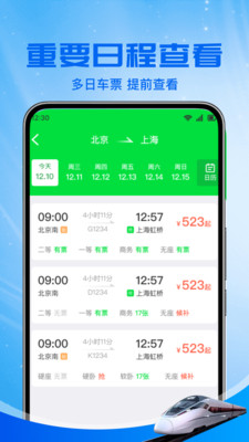 1、根据您的出行习惯和偏好,智能推荐最合适的车次和座位类型。