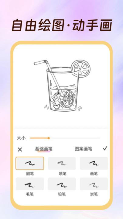 2、支持多种画笔选择,可调整笔触大小和颜色,满足不同绘画需求,无论是细腻线条还是大胆色块,都能精准呈现。
