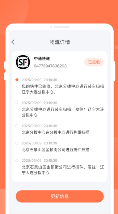 3、系统与各快递公司物流数据实时同步,快递的每一个流转节点都会在第一时间更新。