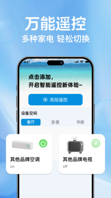 2、支持添加空调和电视遥控器,不同品牌型号的设备都能快速匹配适合的遥控器;