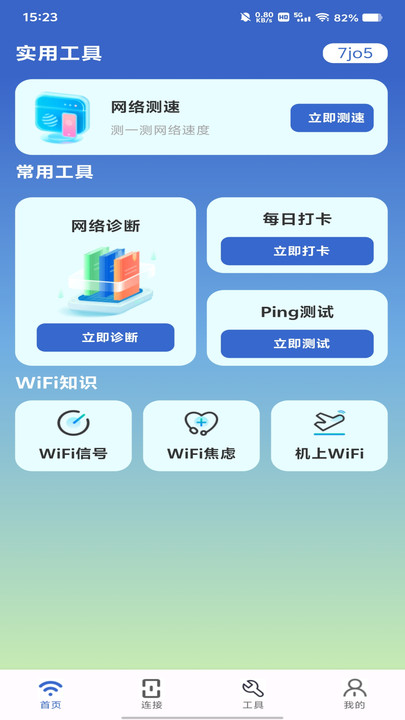 2、进入首页可以看到丰富的功能,可以实时扫描附近的WiFi。