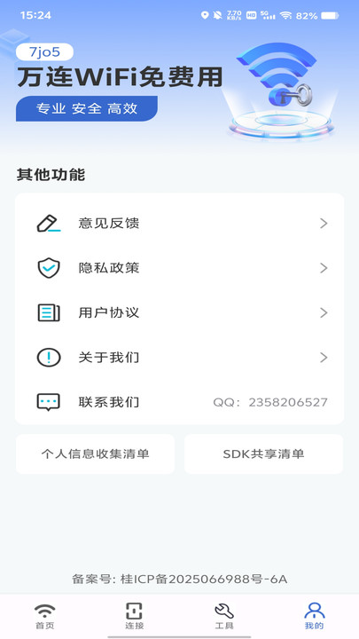万连WiFi免费用app是一款非常好用的网络助手,可以来实时连接WiFi上网,连接过程中,安全隧道对用户信息进行实时加密保护,防止数据泄露,用户可以实时测试当前网络的速度,确保连接的网络质量,提供流量统计功能,查看手机流量消耗情况,合理管理流量,不断更新,优化连接体验,增加更多可用热点,修复已知问题,确保用户获得最佳使用体验。